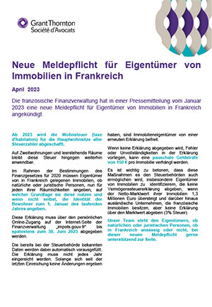 Unser Team steht den Eigentümern, ob natürlichen oder juristischen Personen, ob in Frankreich ansässig oder nicht, bei dieser neuen Meldepflicht gerne unterstützend zur Seite.